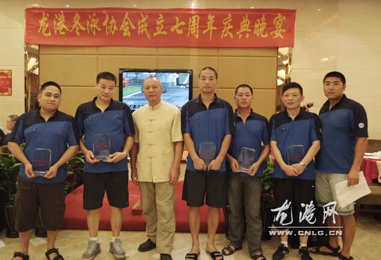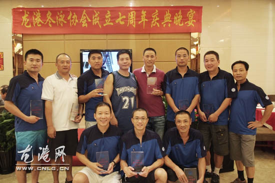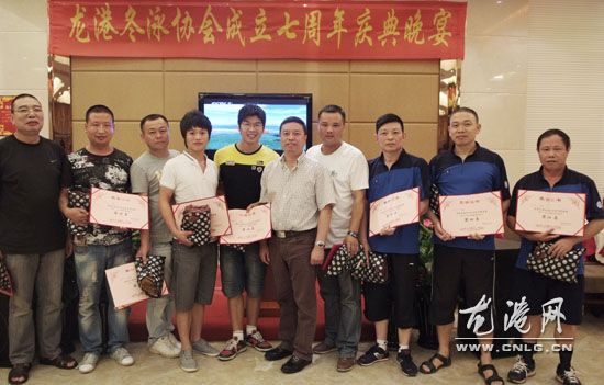 龙网9月19日讯:昨天下午,龙港冬泳协会成立七周年暨迎中秋游泳邀请赛在龙港职介游泳场举行。本届邀请赛由龙港镇冬泳协会主办,龙港网协办。副镇长吕存阳出席颁奖仪式。
