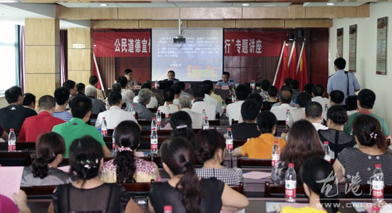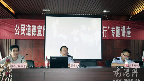 龙网讯:9月20日,是全国第八个“公民道德宣传日”。为了向广大的群众倡导文明的交通行为,龙港交警队在江埔社区举办了一场“公民道德宣传日,文明交通平安出行”的专题讲座,龙港交警队事故中队副中队长董宗乐为主讲人,社区的党员和群众到场听取讲座。