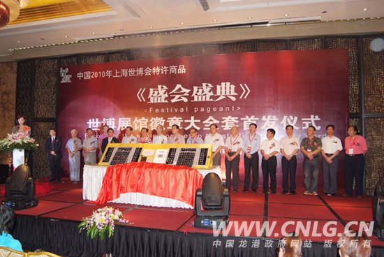龙网9月25日讯:随着世博会闭幕的日益临近,为了留住这些独具匠心的展馆,我镇浙江如意礼品工艺有限公司精心打造了《盛会盛典》世博展馆徽章大全套,办起了“徽章上的世博会”。日前,世博展馆徽章大全套发布会在上海举行,县镇领导苏庆明、丁振俊、王忠秀、吕存阳等出席了发布会。