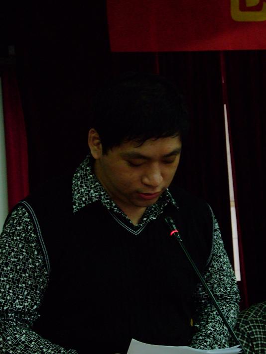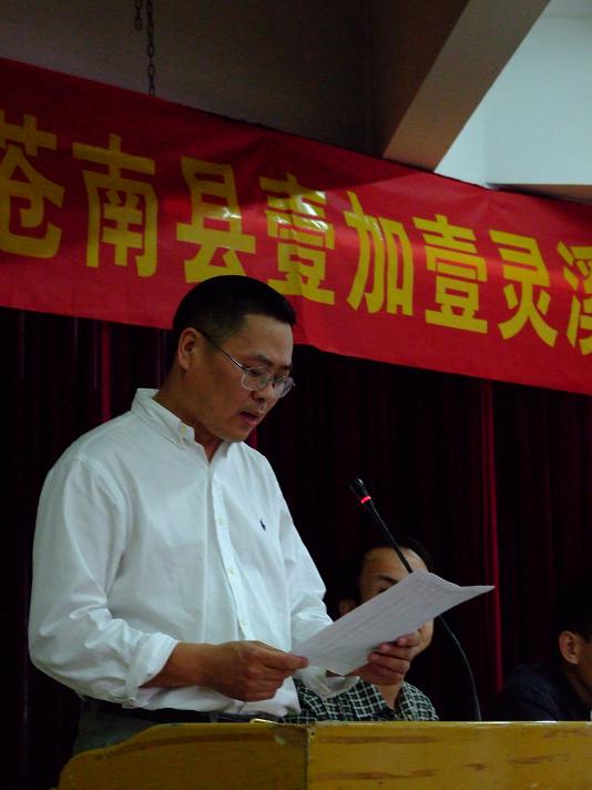 (县壹加壹应急救援中心副秘书长陈杰宣读服务站成立文件及新一届管理层任命文件)