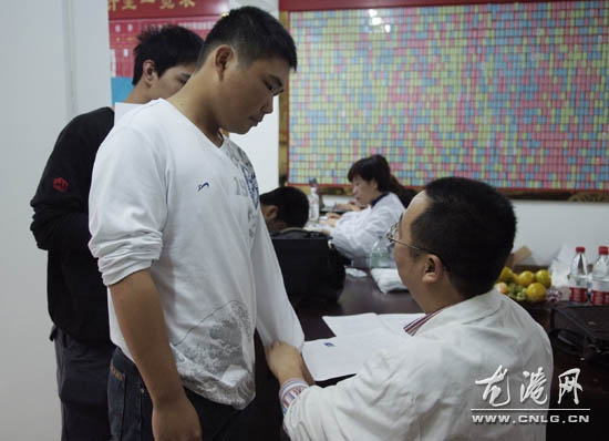 图为我镇2010年冬季征兵目测初检工作在龙港江浦社区举行