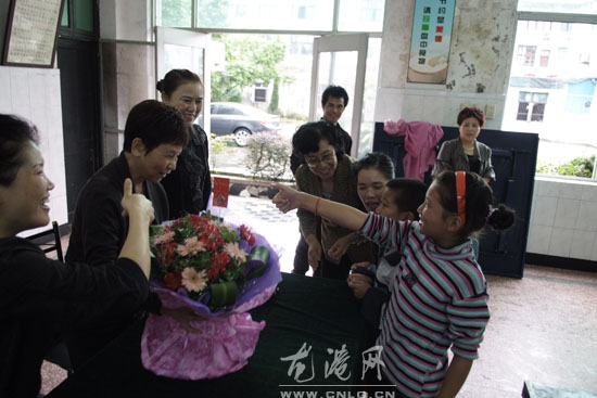 今天一早,邱桂兰老人在镇妇联主席陈美花等的陪同下来到龙港聋哑学校,将自己的积蓄捐给了聋哑学校,给这群特殊的孩子送上自己的一份爱心。对于邱桂兰老人的这份善心、爱心,学校的孩子们纷纷竖起了大拇指表示感谢,他们送上了鲜花,并以自己特殊的表达方式----手语,为邱奶奶唱响了生日快乐歌。