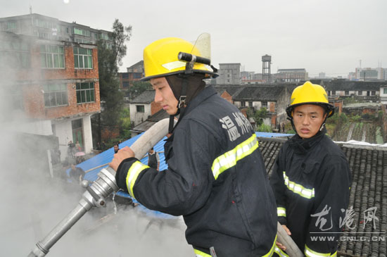 在现场,刘南村民刘先生告诉记者:当时他刚吃完中饭在休息时,忽然闻到一股焦味,出来一看才发现隔壁起火了,就打110报警,村里的消防队也赶来扑救,由于是棉纱一捆捆,很难扑灭。2分钟后,龙港消防中队也来到现场, 还好消防官兵及时赶到,奋力扑救,不然的话,我家也会被烧毁。