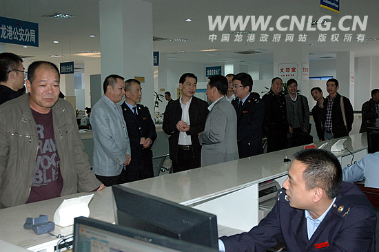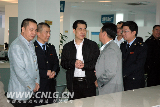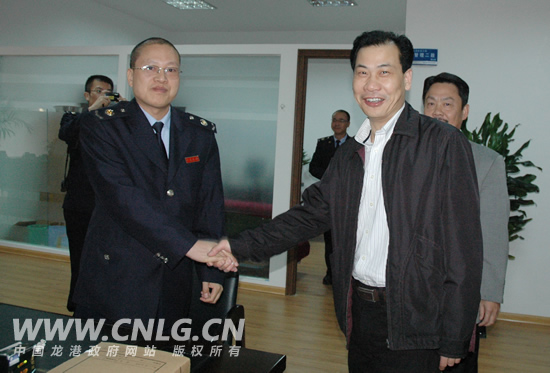 龙港成立全省首家镇级车购税征收窗口,镇长王忠秀看望工作人员
