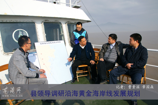 龙网12月9日讯:日前,苍南县县委副书记、代县长董庆华,县人大主任苏庆明带领县府办、县发改、海洋与渔业局、旅游、国土、规划、林业、沿海办等部门负责人,乘坐中国渔政33415船,从北片龙港出发,一路调研至南片霞关港,深入考察苍南沿海黄金海岸线建设和发展情况。