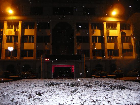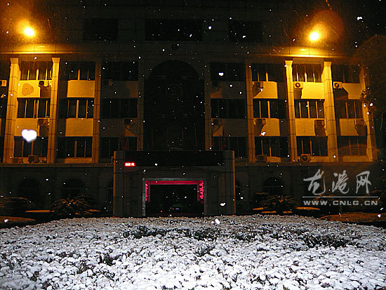 龙港政府大院现在已经是银装素裹,好一派雪景。