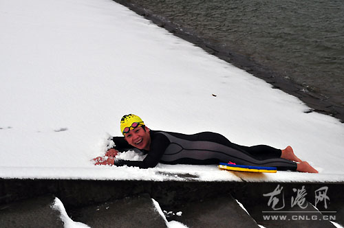 龙网12月16日讯:龙港几年来第一场雪,龙港冬泳协会会员大家都很兴奋,龙港冬泳人看见雪,比什么都亲,这个时候,我想到了冬泳一族,他们是不是还在坚持?