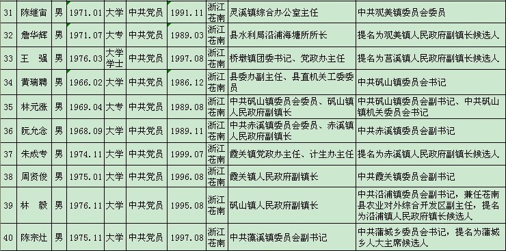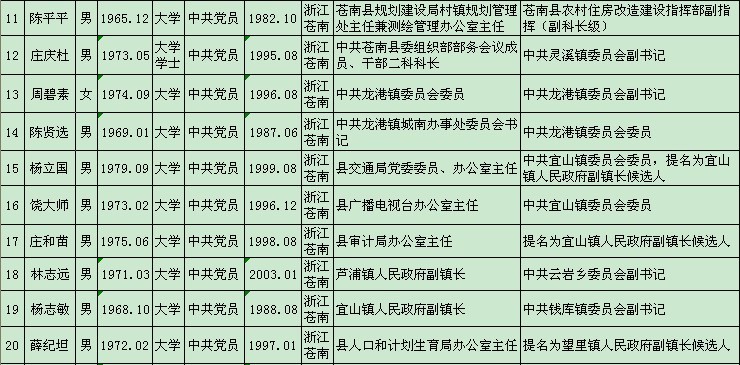 中共苍南县委干部任用任前公示通告