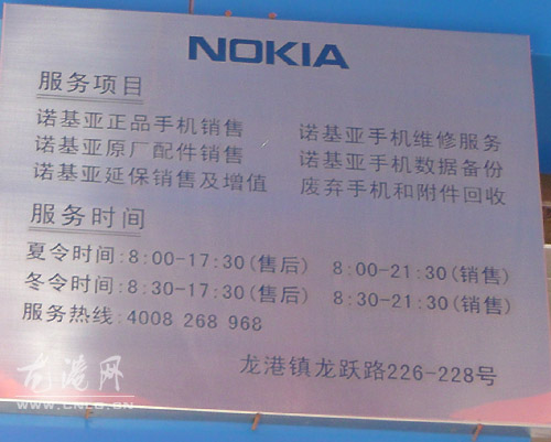 诺基亚龙港专卖店(龙港百川通信器材商行)服务项目与时间