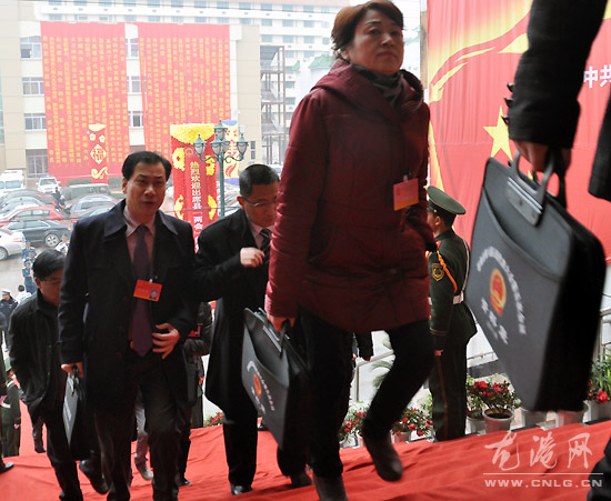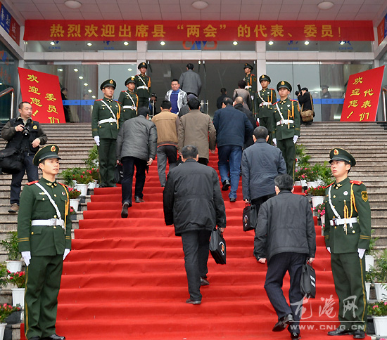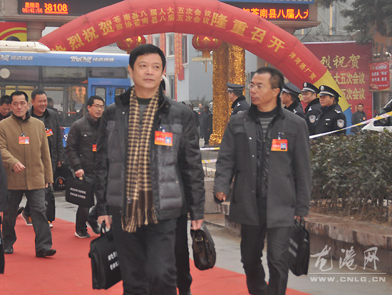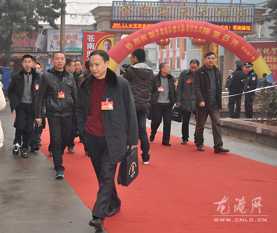 图为苍南县八届人大五次会议龙港代表团代表步入会场 (特派记者 陈记 求利 福存)