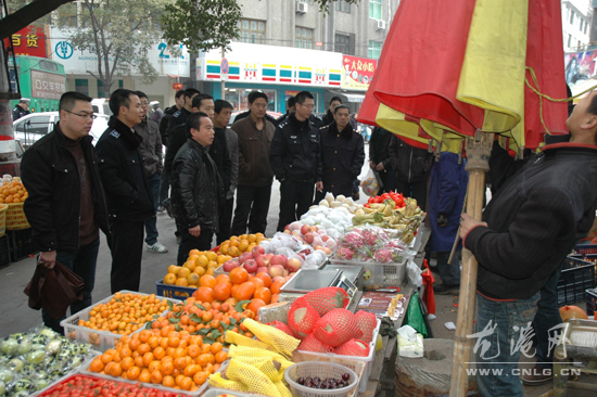 龙网1月26日讯:为全面改善农贸市场周边的乱搭乱建乱摆现象,昨日上午,我镇组织市场办、城管、公安、交警、工商等部门开展了联合行动。