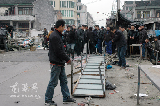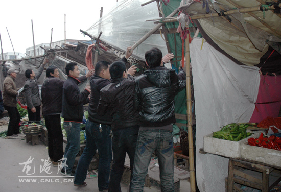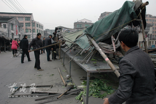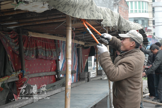 行动组一行先后来到第二菜场、第三菜场、洪宫菜场、西排菜场以及柳南路菜场等地,对菜场周边道路上乱搭乱摆的建筑物或摊点进行清理与取缔。据了解,行动之前有关部门已经向经营户发放了告知书,要求他们自行撤离占道区域。然而在整治行动中一些经营户仍然我行我素,丝毫没有撤离的迹象。为此,行动组对经营户私自搭建的棚架进行强制拆除,并督促其将货品撤离占道区域。