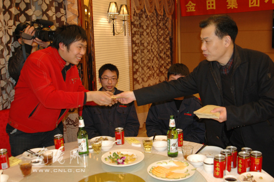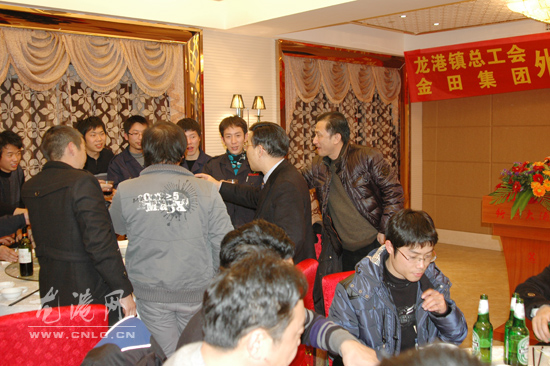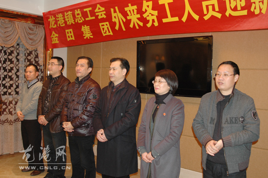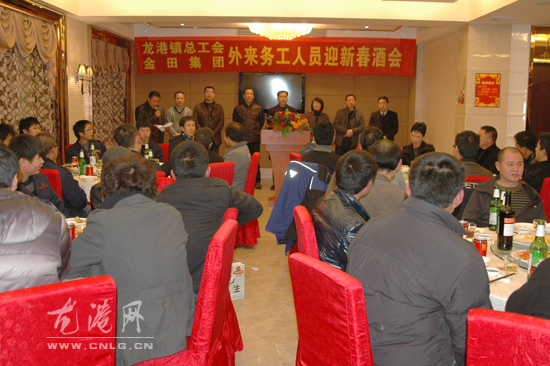 龙网1月27日讯:26号晚上,龙港镇总工会牵头金田集团组织在下垟郑新联大酒店举办外来务工人员迎新春酒会。出席领导有镇长王忠秀(副县长级),镇委副书记缪克钊,县总工会主席黄晓玲,副主席苏曦、 黄定仕,龙港镇总工会主席方崇涨。