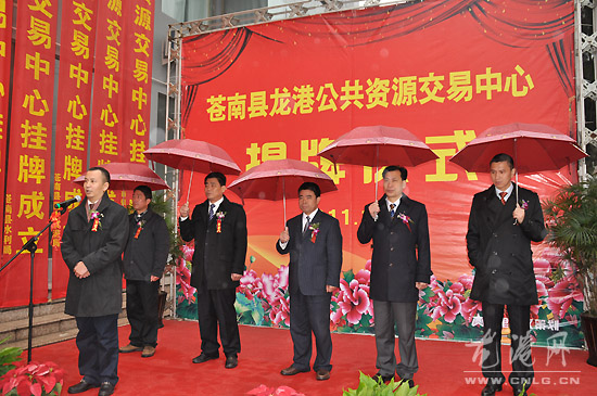 县委副书记、县长董庆华,县委常委、龙港镇委书记林万乐共同为交易中心揭牌;镇长王忠秀主持仪式。