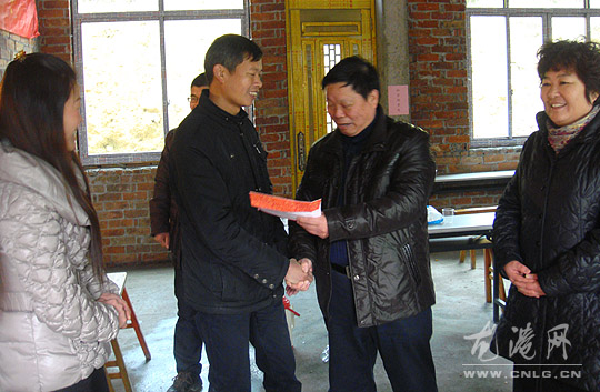2011年1月29日,仪邦集团党委书记、政治处主任、副总裁陈如奏,党委副书记林敏,党委办主任白金娥,受集团董事局主席应仲树委托,到“村企共建”单位——凤阳乡岭边村、龙港镇湖前办事处凰浦村、龙港镇江山办事处寿山村开展春节慰问活动。 陈如奏等同志每到一地,都与村干部进行座谈,了解村里经济和社会各项事业发展情况。村干部领导热情接待,并感谢仪邦集团多年来对当地村建设的支持和帮助。 最后,陈如奏代表仪邦集团董事局主席应仲树为三个村分别送上慰问金一万元人民币,祝全体村民春节快乐、身体健康、万事如意!(白金娥)