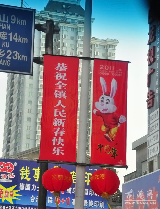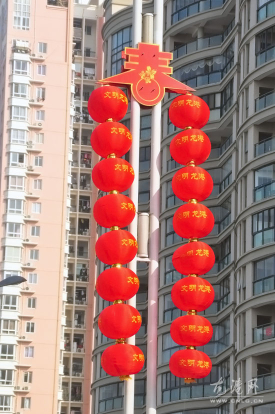 龙网2月1日讯:春节临近,记者连日走访城区看到,镇创建办工作人员在寒风中穿梭着,广告公司的施工人员在广场上设计漂亮的园林小品,在道路两旁种上喜庆的花卉,在人行道树上安装五彩缤纷的LED灯饰,扮靓城市。经过他们的巧手打扮,如今的龙港城区主要路段、公园、广场变美了,白天是“姹紫嫣红斗芳菲”,晚上则是“流光溢彩不夜城”。该镇整个城区被红彤彤的灯笼、“兔娃送福”装扮的靓丽喜庆,处处洋溢着新春的气息。
