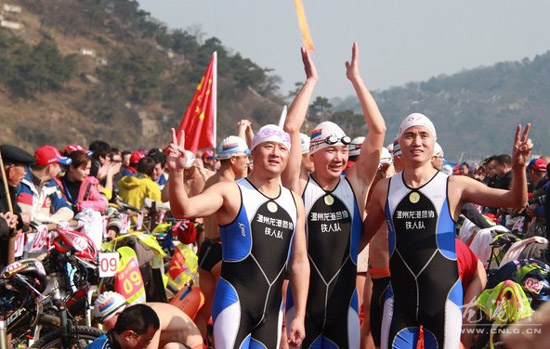 龙网2月6日讯:(陈国栋 吴日姜)正月初二,温州市首届“永益杯”小铁人三项赛在千年古镇金乡举行,来自全市22个队,90多名“铁人”聚集金乡,展开激烈角逐,给金乡古城增添了浓厚而喜庆的年味。我镇冬泳协会派出6名队员参加比赛。县领导苏庆明、林森森等出席开幕式。