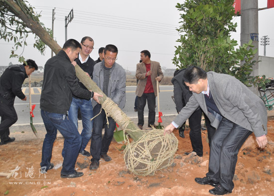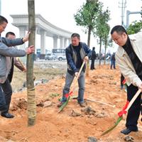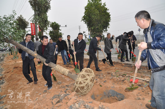 上午9点,龙港世纪大道新雅工业园前的道路两旁人头攒动,人声鼎沸。参加植树的镇机关干部挥锹舞锨,热火朝天地挖穴、植树、培土,经过一个多小时劳动,100株桂花树和樟树迎风摇曳,生机勃勃。大家以植树造林的形式向全镇人民进行春节团拜。