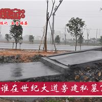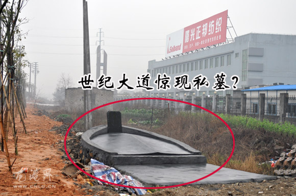 “站在企业大门边上,就可以看到坟墓,心里感觉很不是滋味。”该企业主说,原先这里只是一个小土堆,据说是墓地,当时与该墓主后裔协商过几次,由于要价太高无法达成协议。3月3日,该墓后裔叫来泥水工运来3车石头修建起该墓地。现在,世纪大道两侧正在植树造林,该墓后裔应该自觉把坟墓迁移远离世纪大道和企业厂区,“哪有把小土堆墓地重新修建成大坟墓。”