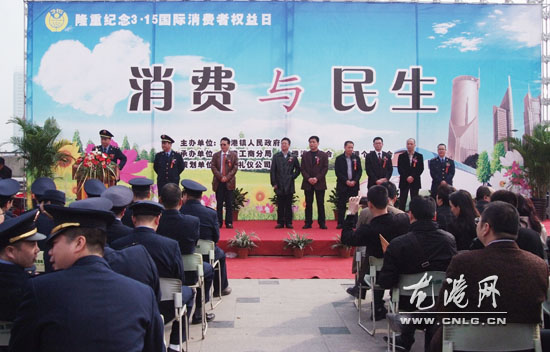 龙网讯:3月14日上午,由龙港镇人民政府、龙港工商分局、龙港消委分会主办在外滩广场举行以“消费与民生为主题的宣传活动,倡导新的维权理念,加强消费维权的社会保护力度。镇人大主席上官光强,县工商局局长厉达森,镇委委员、副镇长方崇亮出席仪式。