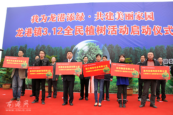 启动仪式上,护绿志愿者发出“我为龙港添绿·共建美丽家园”倡议,新雅投资集团有限公司、曙光印业集团有限公司、温州黄河超细纤维有限公司、浙江瑞普实业有限公司、温州亚泰陶瓷有限公司、仪邦集团有限公司等六家企业代表我镇第一批认捐认建绿地企业现场认捐认建绿地,还成立了新龙港人、青年志愿者、巾帼志愿者、夕阳红志愿者、网民监督团、龙港一中等六支城市护绿队。此外,网络植树平台也同步开启。