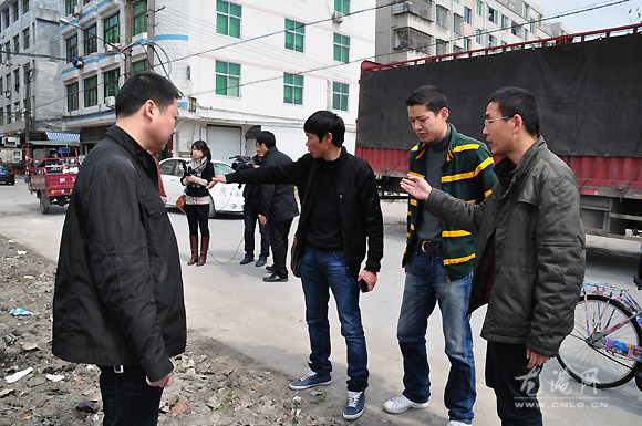 龙港城南办事处书记翁跃文(右一)在现场督导