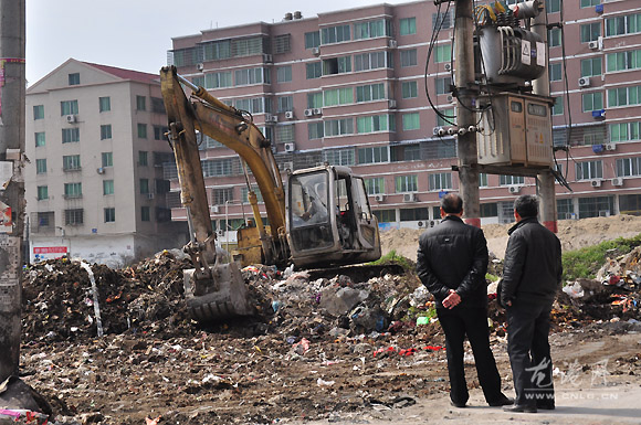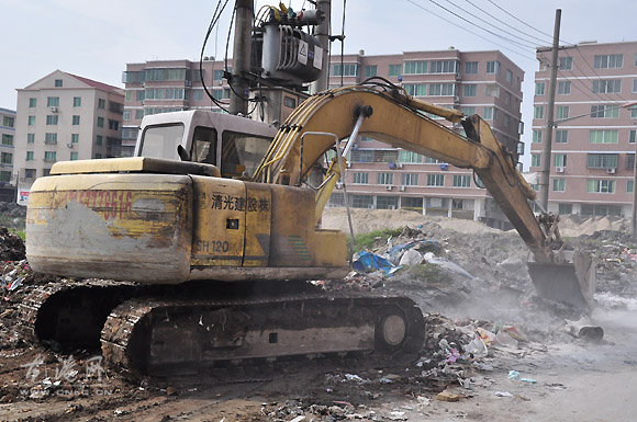 今天上午九点多,记者在现场看到,一台大型的挖土机正在现场作业,对路边满地的生活和建筑垃圾进行一一清理,使这个长达几年时间的垃圾死角得到有效治理,而最高兴的就是居住在附近的村民们了。