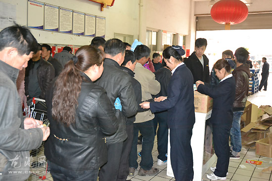 上午,在百一超市调味料销售区的过道上排起了长队。