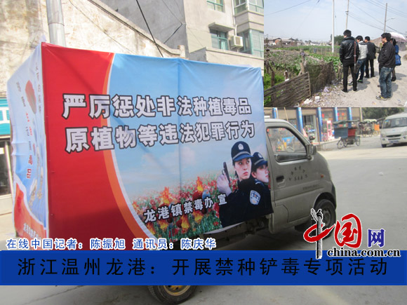 龙网3月23日讯:(在线中国记者陈振旭 通讯员:陈庆华)三至五月份是罂粟开花、结果的时期,3月20日龙港镇禁毒办利用宣传车再次开展了“不让罂粟开花、结果”的禁种铲毒宣传进村居活动。在驻村干部的带领下,宣传车深入到全镇128个村居,利用广播设备大力宣传关于禁种铲毒的通告,大造“种毒违法、种毒必铲、种毒必究”的舆论氛围,让群众了解到非法种植毒品原植物的危害性和严重性,教育群众自觉不种毒,积极举报非法种植毒品原植物行为,形成全民参与禁种铲毒的良好氛围。