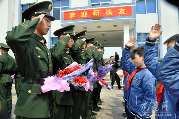 龙网3月28日讯:通讯员吴水斌 摄影报道:3月25日,浙江温州边防支队新战士经过3个多月的严格训练后,奔赴沿海一线的哨所、船艇、海岛服役,执行各项边防保卫任务。海防又添新卫士,驻地群众纷纷以鲜花、锣鼓等形式欢迎亲人子弟兵的到来,体现出浓浓的军民鱼水之情。图为3月25日,龙港边防派出所新战士受到驻地学校师生的热烈欢迎。