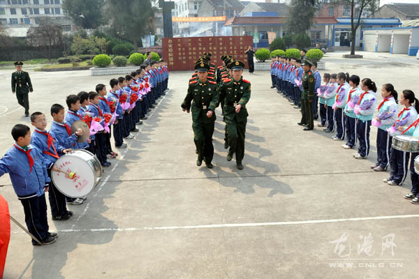 图为3月25日,龙港边防派出所新战士受到驻地学校师生的热烈欢迎。