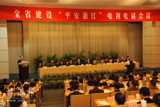 省委副书记、省长吕祖善主持会议。省委副书记夏宝龙宣读省委、省政府表彰平安市、县(市、区)和省级部门创建平安工作先进单位的决定。省领导陈敏尔、王辉忠、李强、黄坤明、葛慧君、茅临生、蔡奇、林恺俊、厉志海、王永昌等在主分会场出席会议。会上,省领导为获奖单位授奖。苍南县委常委、龙港镇委书记林万乐作为全省唯一乡镇代表在大会上作典型发言,向全省介绍平安建设经验。