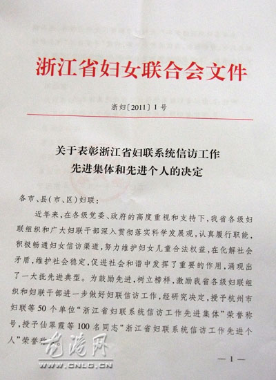 龙网4月9日讯:近日,从省妇联传来喜迅,龙港镇妇联主席陈美花荣获浙江省妇联系统信访先进个人。