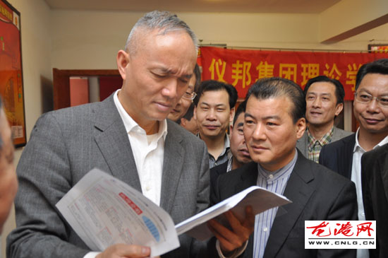 听取汇报后,蔡奇部长做了重要讲话。他说:参观了文化长廊、图书阅览室、党员活动中心、法律服务中心,以及两层楼面的系列宣传栏窗,并翻阅党建工作系列台帐,总体感到仪邦集团企业文化氛围很浓,留下了深刻印象。陈书记富有激情的介绍,也没有超过五分钟,归纳精辟,声音宏亮,不要扩音,听了很受启发。特别是“五分钟晨学”,作为仪邦党建的一大亮点,受到各方面关注。由于非公企业生产经营任务重,有许多特殊性,上级精神传达到基层,不可能老是长篇大论讲很多话,概括成非常精辟的几句话进行贯彻,实在很有必要。“五分钟晨学”,就是“精神快餐”,与中央和各级提倡的读书活动完全可以结合,简便易行,职工欢迎。这一做法,可以向其他企业以至社会各界推广。“五分钟晨学”很适合企业情况,这个探索非常成功,我觉得很好。党建到基层,就是用一句话、几句话,少吃多餐,营养丰富,形象、深刻、生动,看得见,有回味。开展“五分钟晨学”活动,可以作为非公党建的切入点。认真抓好企业文化建设,深入开展“双强争先”活动,继续提升诚信经营水平,积极搞好“党群共建”工作,不断完善和谐劳动关系,积极履行应尽的社会责任,也是非公党建的切入点,这些都是党建工作的重要内容。仪邦集团发展趋势不错,党建很有特色。希望再接再厉,在推进企业改革、发展和企业文化建设中再创佳绩。