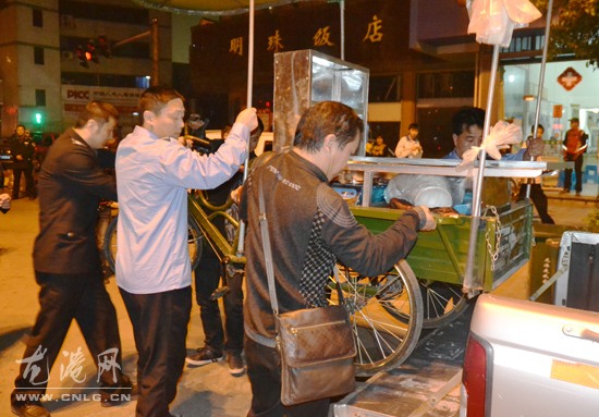 龙网4月27日讯: 为的打击力度,昨天晚上,龙港城镇综合管理大队对城区范围内乱摆摊点、占道经营等行为进行了整治。
