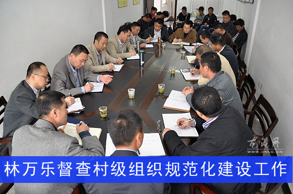 图为在新兰村督查村级组织规范化建设工作