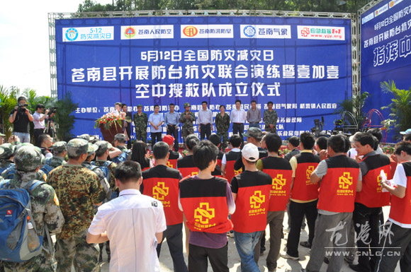 今天的防台抗灾联合演练还模拟对受灾群众、故障中巴车乘客、被困碗窑三折瀑游客进行安全转移和现场救援,拉开了防灾减灾周宣传活动的序幕。今天下午5时多,现场演练刚一结束,县人防办的民防应急指挥车就将演练现场的视频同步传回到了演练指挥中心。在现场,县气象局还在搭架起了长40米宣传版画,将群众带入气象灾害的知识长廊。本次防台抗灾联合演练活动的主办单位有县应急办、县防汛办、县人防办、县民政局、县气象局、桥墩镇和壹加壹应急救援中心。