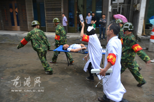 16时25分,空袭警报声骤然响起,社区居民快速有序地撤离家中。指挥员按计划组织展开思想发动、疏散引导、指挥警戒,社区居民在引导员的带领下秩序井然地撤离至安全区域集结,医务人员赶赴现场对受伤人员进行医疗救护。
