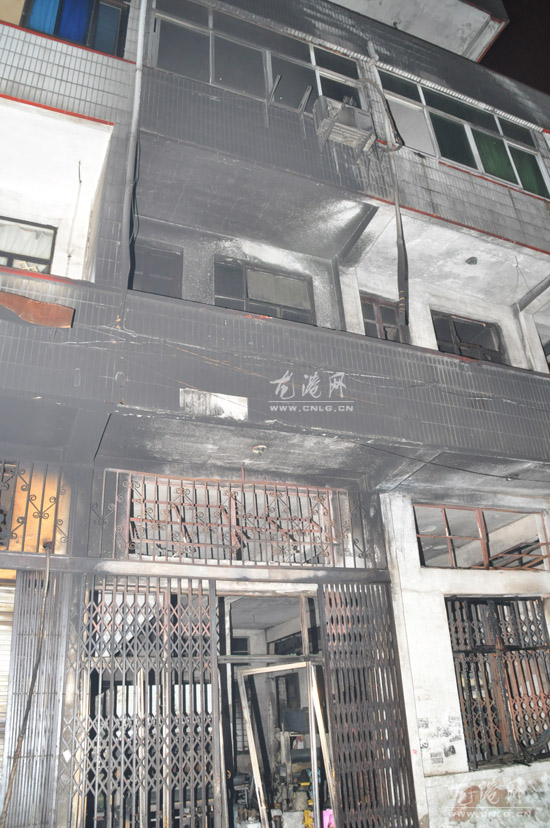 图为外墙被火烟给熏黑