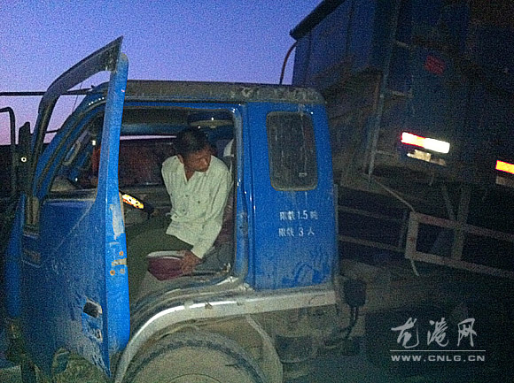 今天晚上6点时,城管执法人员与龙网记者埋伏在西一街外滩码头周边蹲守,监控着码头一举一动。同时,城管执法车也等候在龙港沿江路加油站内,如有情况将立即出击,堵住码头出处口,以便一举把偷排泥浆车辆抓获。