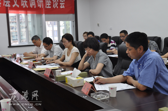 座谈会上,张均林一行人还与我镇各协会会长进行了深刻的交流,了解文联现状,对其发展中存在的问题提出相关的解决方案。张均林对我镇文联工作所取得的成效给予了充分的肯定,并表示进一步发展文联事业,要结合传统文化,有效的举办活动,要重点利用龙港镇的特色项目。