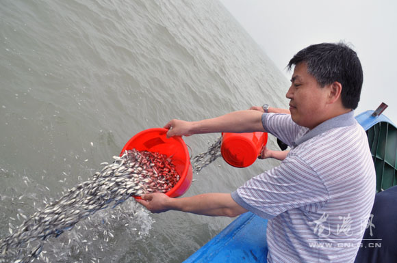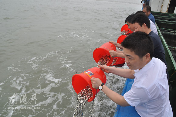 龙网6月8日讯(记者陈记 章国森) 6月8日是第三个世界海洋日,苍南县海洋与渔业局组织在大渔湾官山外侧海域进行大黄鱼增殖放流活动。参加放流的有温州市海洋与渔业局、苍南县海洋与渔业局以及金乡镇政府等有关部门领导。并邀请了苍南县新闻宣传中心、龙港广电站、龙港网站等媒体现场采访,通过电视、报纸、网络媒体向龙港市民展现渔业资源增殖放流盛况、宣传渔业资源增殖放流意义。