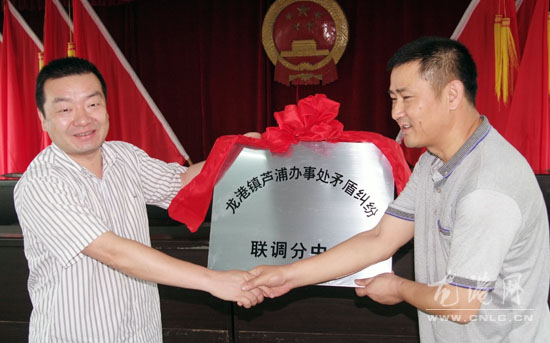 镇委副书记黄建华为芦浦办事处矛盾纠纷联调分中心授牌