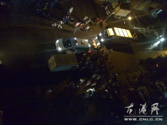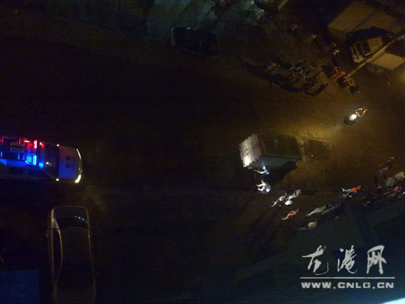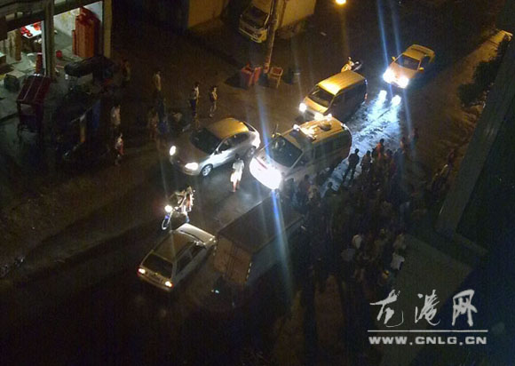 6月22日晚上8点整,在龙港东新街一洗车店门前,一辆小车撞倒一名女子,顿时玻璃碎落一地,开始传出女子的痛苦叫声。群众纷纷赶来帮忙,并拦下肇事司机。8点10分救护车赶到,将伤者送往医院。交警也于8点20分时赶至现场,对事故现场进行查看、测量、取证。