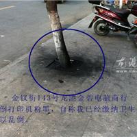 龙网6月23日讯:今天下午,本网记者接到龙港镇金钗街一住户张小姐投诉称:金钗街143号金碧电脑商行每天把打印机碳粉倒置在人行道上的树木坑里,风一吹,打印机碳粉末到处飞扬,过路人意见纷纷,“这些粉末对人体有害,居民对此忧心忡忡。”