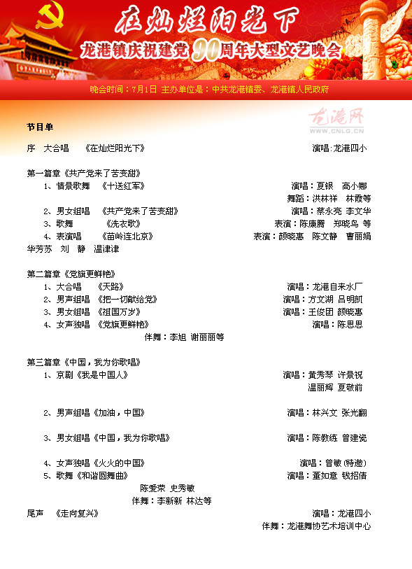 在灿烂阳光下 龙港镇庆祝建党90周年大型文艺晚会