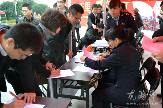 12月5日,是第26个国际志愿者日。也就在这一天,在感谢志愿者们无私奉献的举动时,龙港镇团委进行了志愿者注册登记的推广活动,希望志愿者的队伍能够日益壮大。在推广活动上,志愿服务项目共有9种类型,分别是交通文明、火患清剿、文化弘扬、环境保护、人文关怀、敬老扶幼、学法普法、依法纳税、给力两会。每个前来注册登记的市民,只要填好注册登记表,然后到各自服务项目的摊位前盖章,最后领取志愿者注册登记证即可。