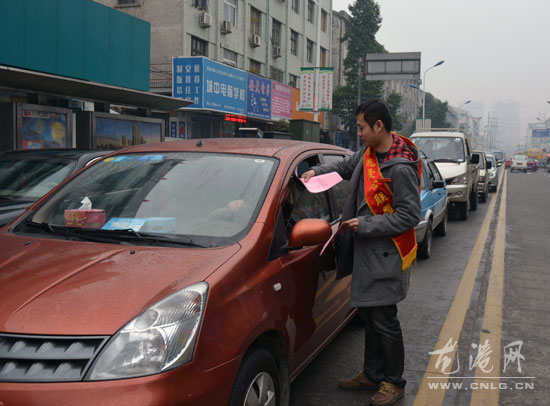 天空下着蒙蒙小雨,寒凉的冷风拂面吹来,交通志愿者站在十字路口红绿灯下指挥车辆的有序通行成了马路上一抹亮丽的风景线。当看到红灯亮起,车辆停下时,志愿者们就给过往的出租车、电瓶车、三轮车等车辆的驾驶员分发着文明交通的宣传单,并细心的提醒驾驶员要遵守交通法规,安全出行。
