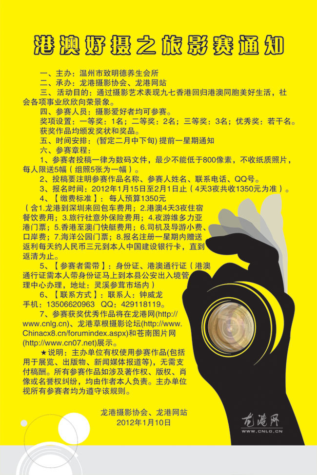 龙港港澳好摄之旅影赛通知