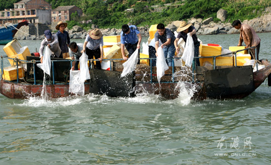 据悉,这批竹节虾苗规格约大于1厘米,运抵后经过与当地海水的温度适应后,用小型渔运船在渔寮附近的海域进行放流。